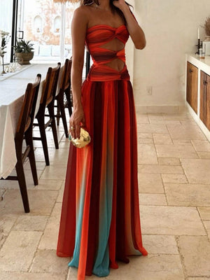 Stand out and make a statement in our stylish and sexy gradient print cutout party maxi dress.