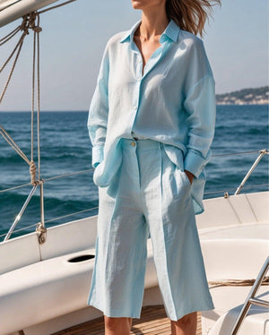 Long-sleeved Shirt Wide-leg Shorts Cotton and Linen Suit