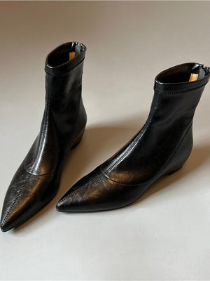 Pointed-toe soft leather stretch boots with back zipper wedge boots