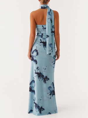 Elegant Floral Print Off-the-shoulder Maxi Dress
