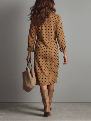 Polka Dot Faux Suede Shirt Midi Dress