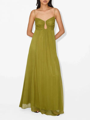 The garment has a loose fit that hugs the body, with a soft drape that adds dimension and texture to the garment.