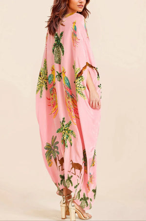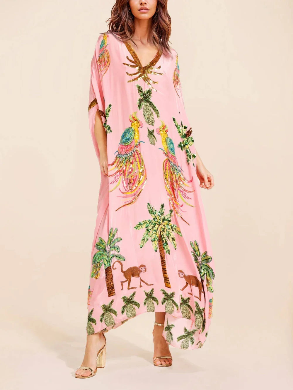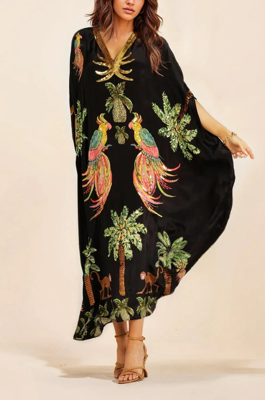 Unique Drop Shoulder Sleeve Coconut Tree Printed Dress