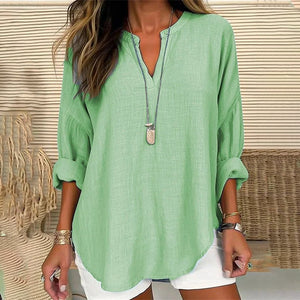 Solid Color V-Neck Long Sleeved Loose Casual Blouse